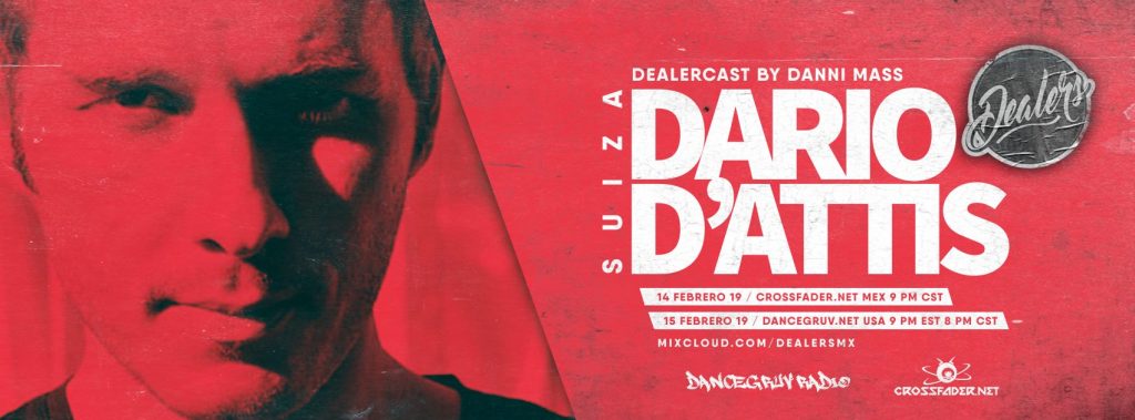Dealers / Podcast 084 Special Guest: DARIO D’ATTIS 2019.02.14 crossfader.net 9 PM CST 2019.02.15 dancegruv.net 9 PM EST 8 PM CST www.mixcloud.com/DealersMx