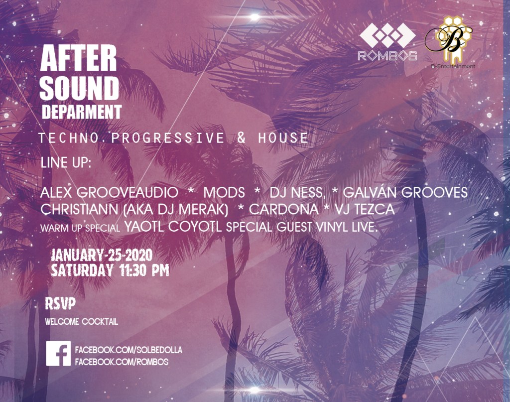 Tenemos el honor de invitarlos a este primer after party en compañía de los mejores exponentes de techno y progressive house de B.C.S. en un lugar exclusivo de Cabo San Lucas, especial por su vista y sus instalaciones.