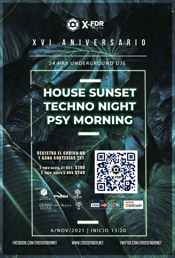 Sunset House, Techno Night, Psy Morning más de 24 hrs de música continua.