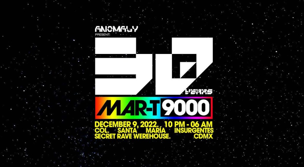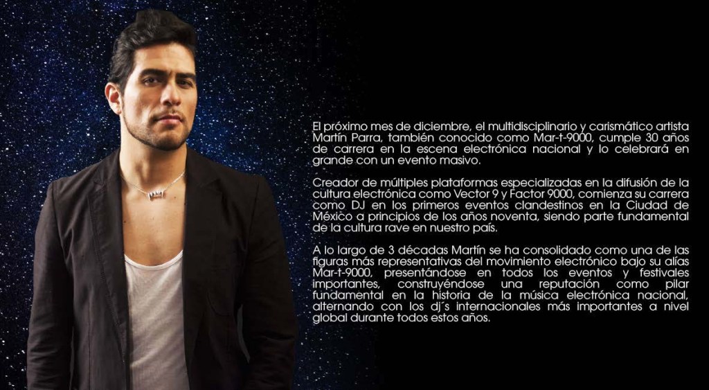 El próximo 9 de Diciembre, el multidisciplinario y carismático artista Martin Parra, también conocido como Mar-t-9000, cumple 30 años de trayectoria en la escena electrónica nacional y lo celebraremos en grande con un evento colectivo.