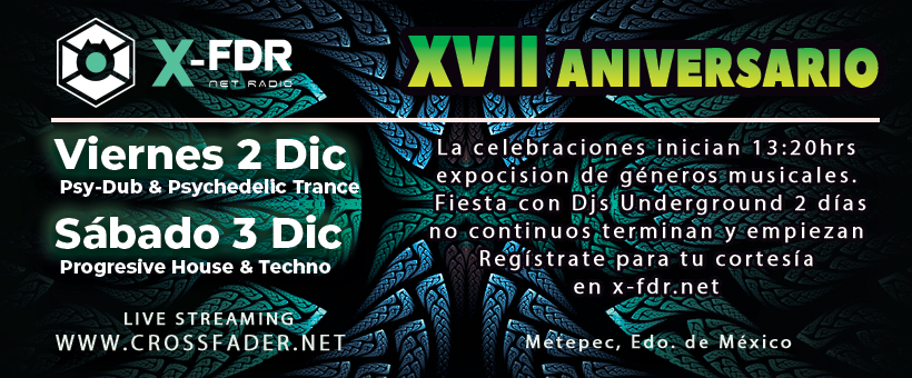 Crossfader es una estación de radio que cumple 17 años de estar transmitiendo música underground para todo el planeta con 5 canales simultáneos para disfrutar de tu género favorito el mood que desees.