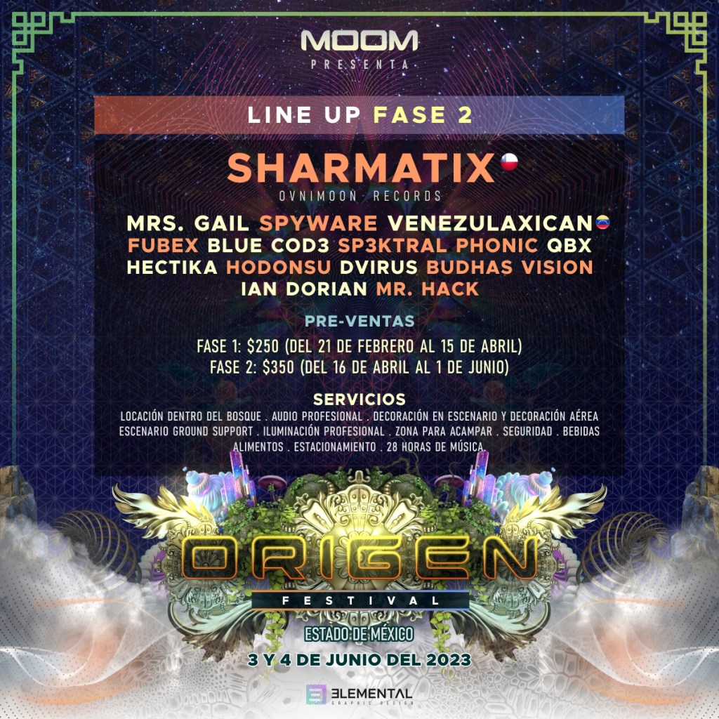 Esta es la fase 2 en nuestra Line Up para ORIGEN Festival con uno de los proyectos mas sobresalientes de la disquera chilena Ovnimoon Records, hablamos de Nico quien es la mente detrás del proyecto Sharmatix, además de productores de nuestro estado y los Djs que nos visitan del bajío.