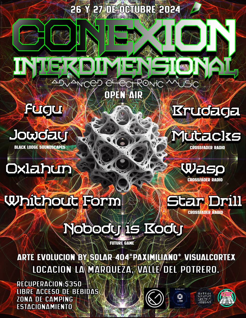 «Conexión Interdimensional», 24 hrs de musica electronica que reunirá a toda la banda ancha para celebrar la vida, la cultura rave y la música electrónica que nos encanta. Pasando por todas las texturas sonoras desde psy chill downtempo, hasta variantes del techno, progressive y psy trance.