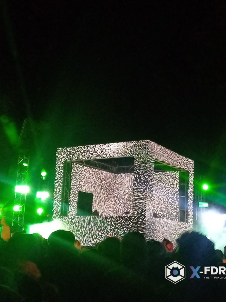 Uno de los primeros detalles que captó la atención de los asistentes fue la impresionante instalación de un cubo 3D, diseñado para dar una sensación arquitectónica futurista. Los visuales, llenos de texturas y formas abstractas, complementaron perfectamente la música, creando una atmósfera envolvente que llevó la experiencia sensorial a otro nivel. La integración de elementos visuales con la música es algo que se ha convertido en un sello distintivo de Radiance Festival, y este año no fue la excepción.