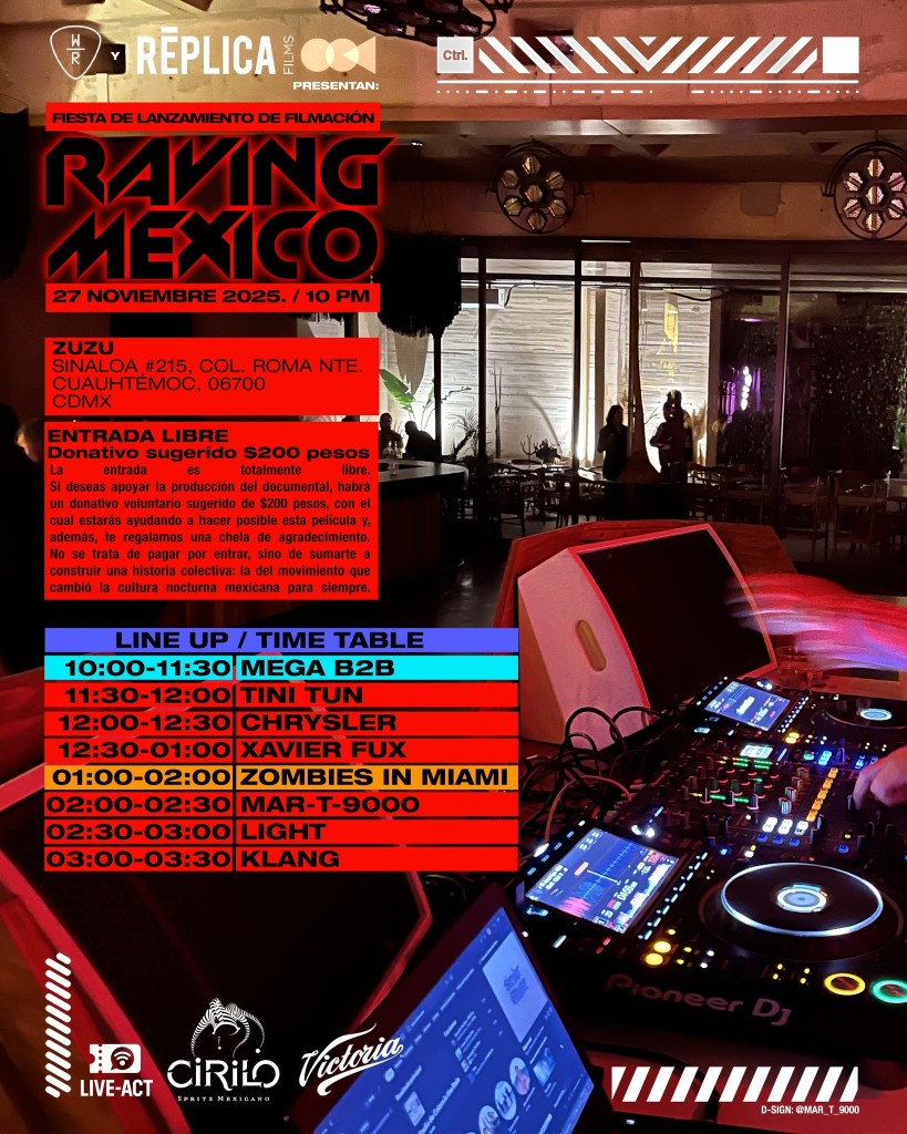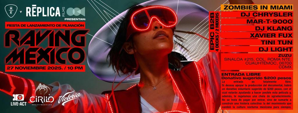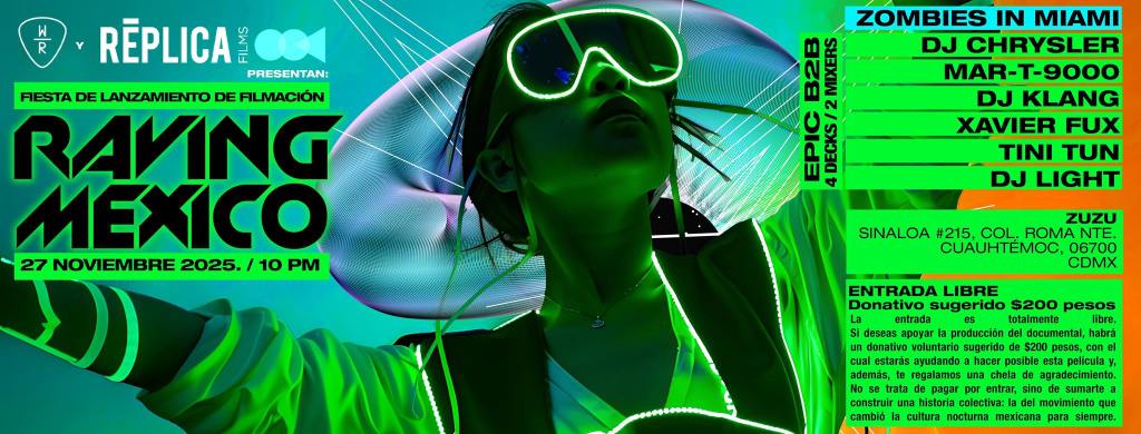 Ciudad de México, México – El movimiento que definió la cultura juvenil nocturna de México en las últimas tres décadas está a punto de recibir el reconocimiento histórico que merece. Este próximo jueves 27 de noviembre de 2025, la producción de RAVING MEXICO dará inicio a su fase de rodaje con una fiesta de lanzamiento en ZUZU (Roma Norte, CDMX).