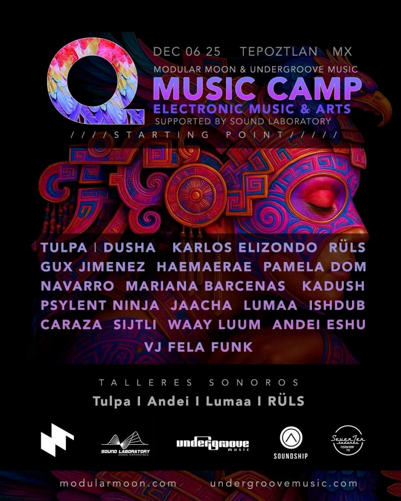 Modular Moon (desde Ámsterdam) y Undergroove Music (con sello mexicano) unen fuerzas y visión para presentar el Q Music Camp: Starting Point. Este evento marca el despegue hacia algo mucho más grande: el festival principal que se celebrará en diciembre de 2026. Pero no hay que esperar, ¡la acción comienza ahora mismo!